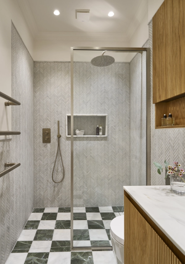 Introduced in April 2024, we were tasked with reimagining a beautiful London mansion block apartment with ceilings soaring nearly four metres high, soon to become home to a young family. While generous in volume, the existing two-bedroom layout required thoughtful reconfiguration.
