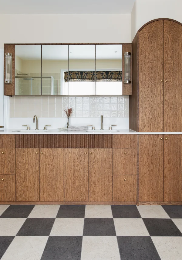 First and foremost, we tackled the main bathroom, a bustling space catering to a couple and their three teenage daughters. Given its frequent use, storage solutions were paramount, alongside maintaining a serene ambiance conducive to relaxation. We designed bespoke oak stained joinery with fluted detailing, offering practicality without compromising aesthetics.